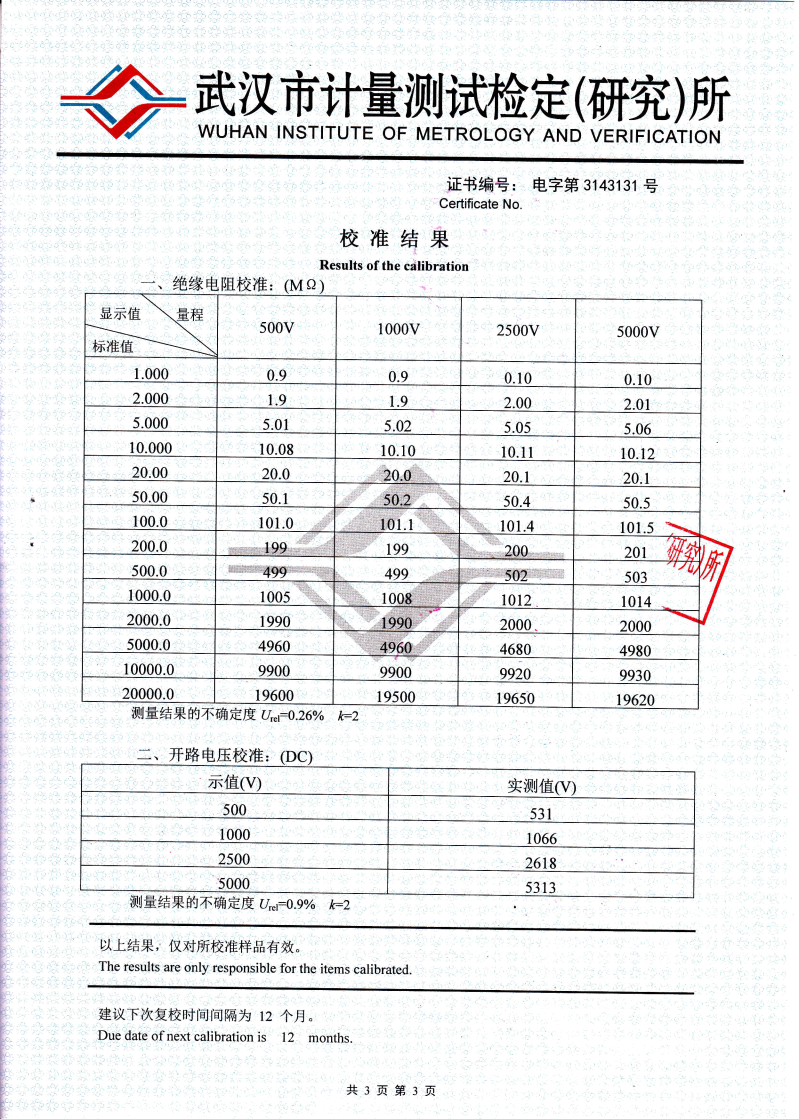 | 2500V | 20000 | 1-1000 | ⑽ | 起始為1MΩ |