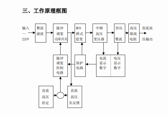 首先,直流高壓發(fā)生器接入 220V 或 380V 的交流電源,交流電源通過電源輸入模塊進(jìn)入設(shè)備內(nèi)部。接著,交流電流流入整流電路,整流電路一般由整流二極管或整流橋堆構(gòu)成。以常見的橋式整流電路為例,它利用二極管的單向?qū)щ娦?,在交流電源的正半周和?fù)半周分別讓不同的二極管導(dǎo)通,將正弦交流電轉(zhuǎn)換為脈動(dòng)直流電。