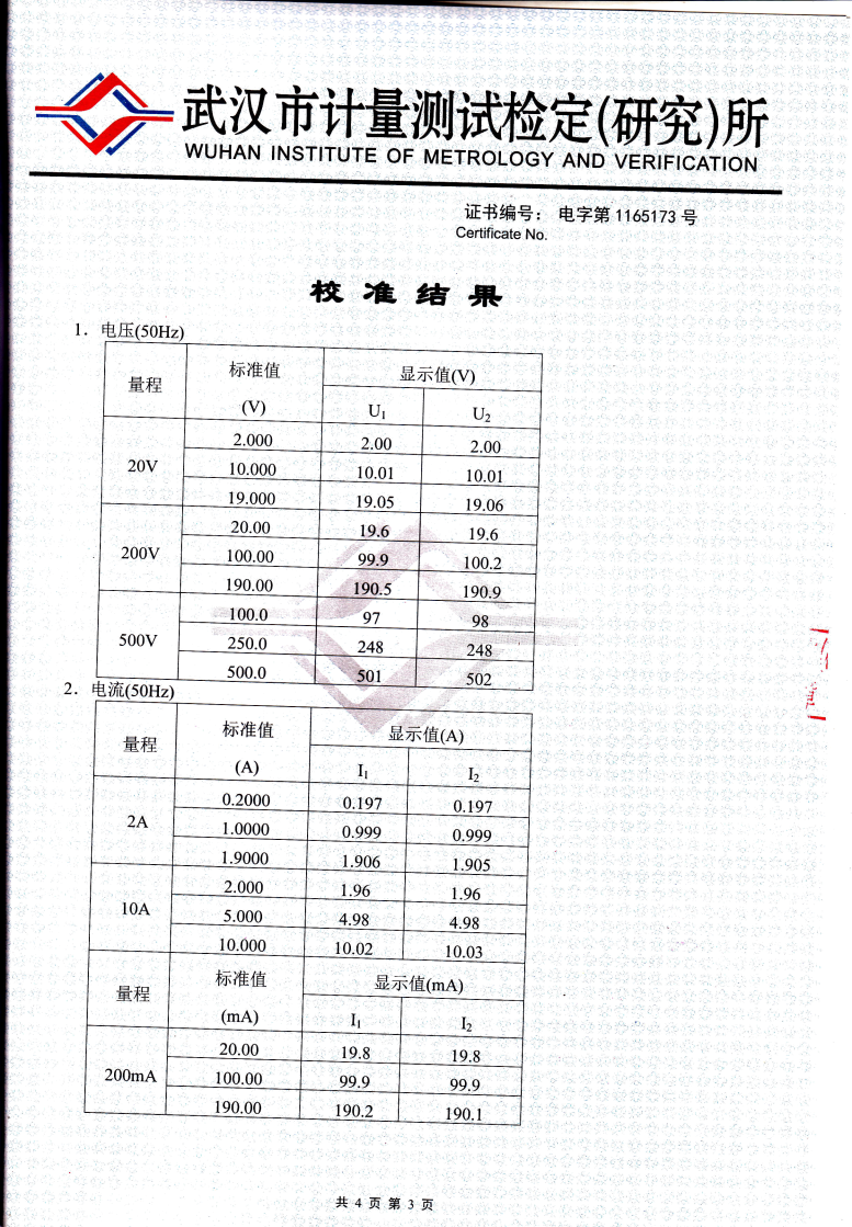 | 交流電壓 | 100V/220V/500V | 5V~500V | 0.001V | ≤±0.5%量程 |