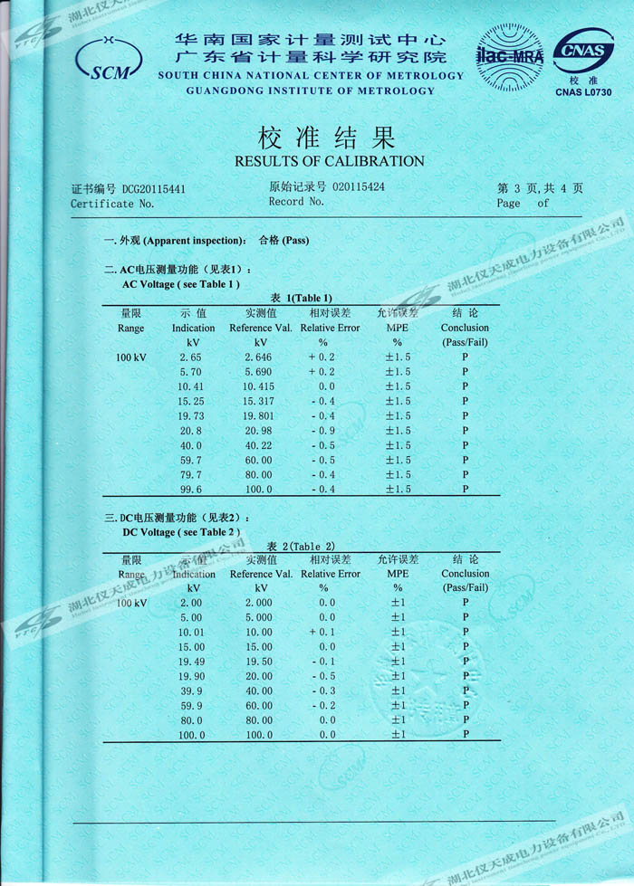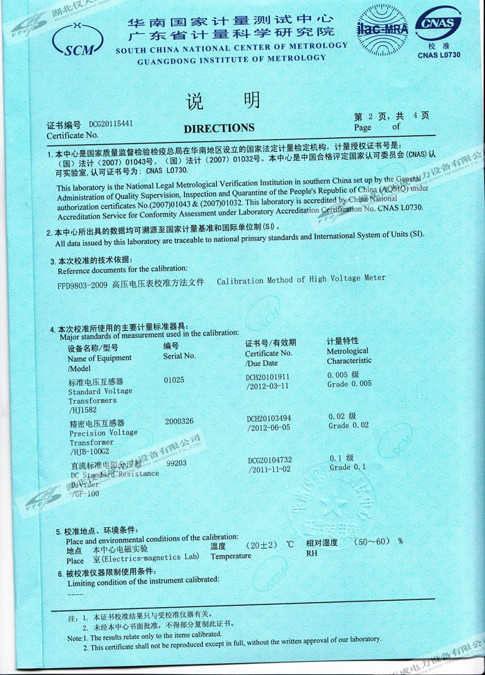 YTC8107-100電容分壓器高壓測量系統(tǒng)的資質(zhì)證書